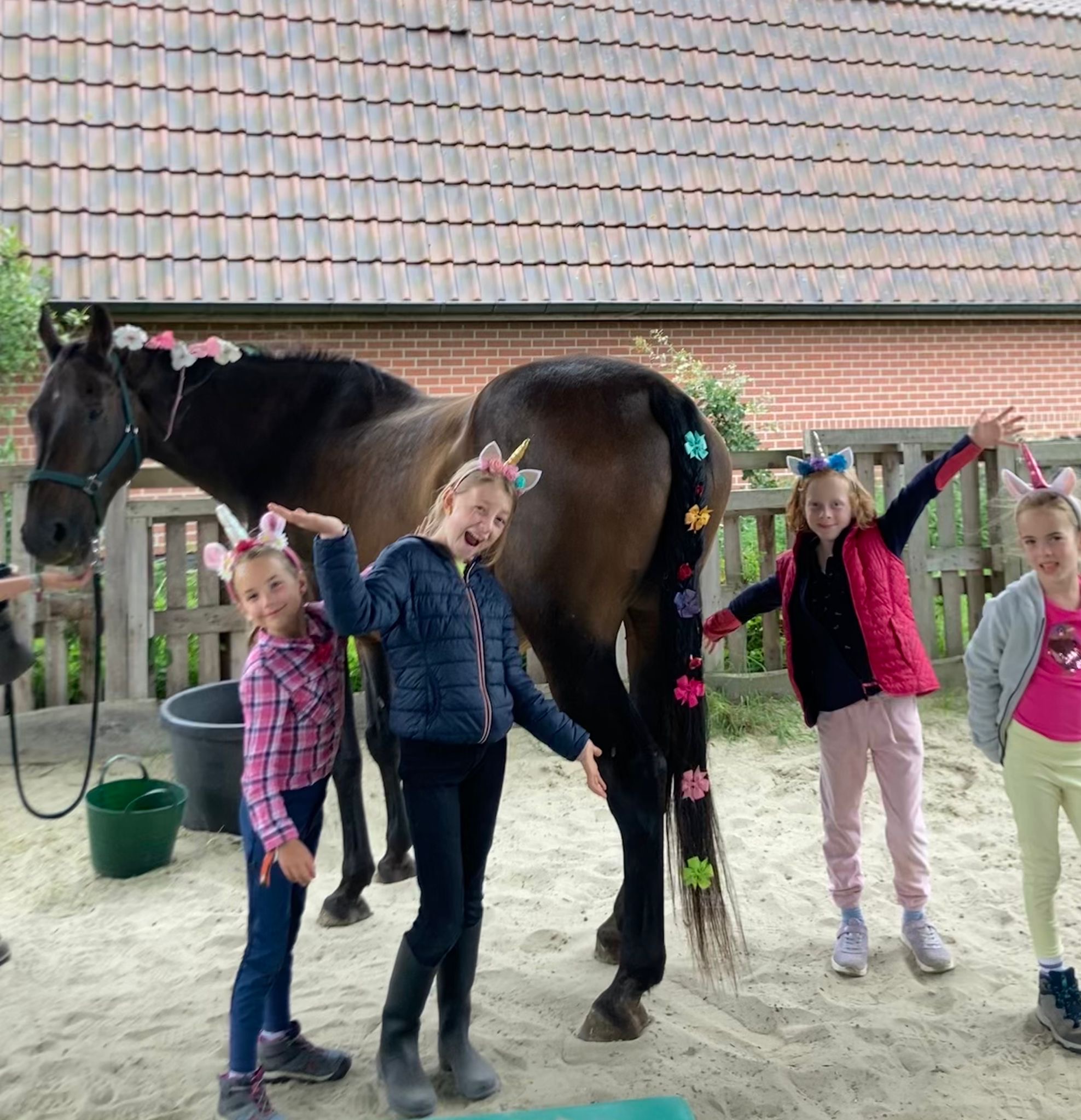 - Op maat van de deelnemers een stukje theorieles over het verzorgen en rijden van het paard